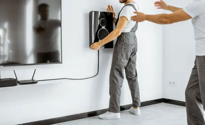 Speaker placement, soundproofing guidance, and acoustic adjustments ensure clarity, depth, and immersive audio performance throughout the room.